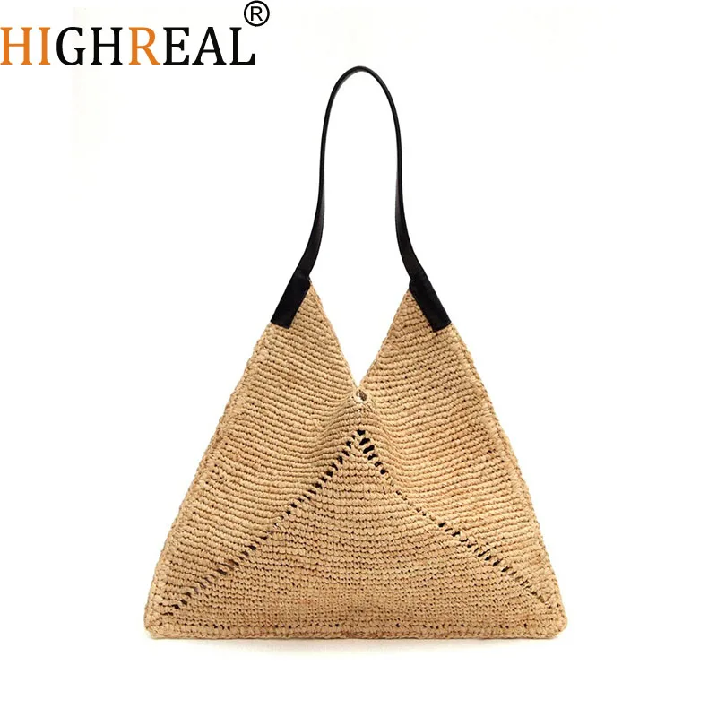 New Lafite Grass Hollow Vacation Beach Big Triangle Women’s Bag Large Capacity Grass Woven Handbag