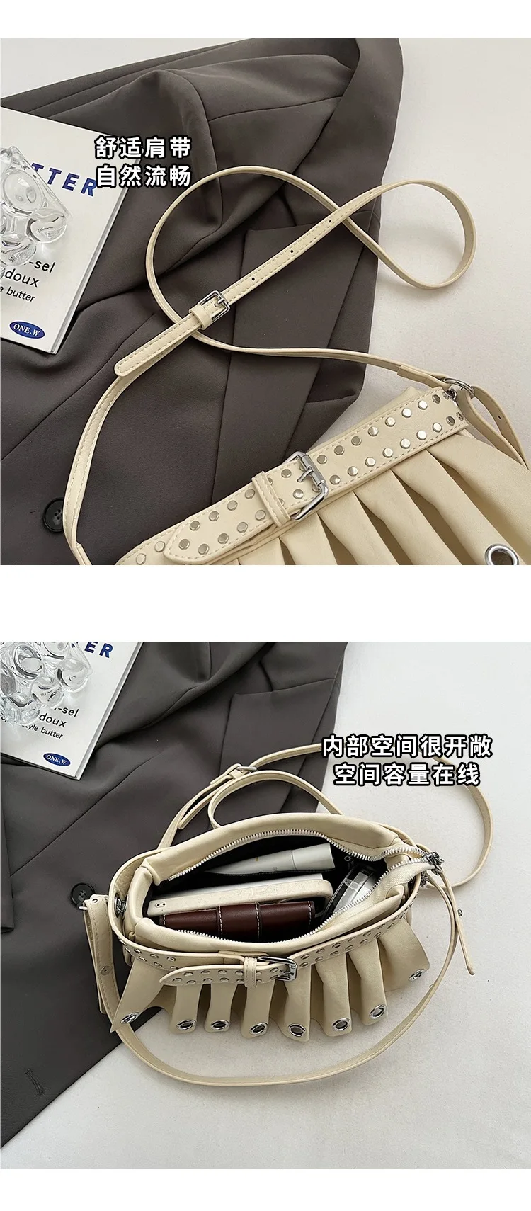 The ruched decoration adds a touch of elegance, turning this underarm bag into a fashionable accessory.