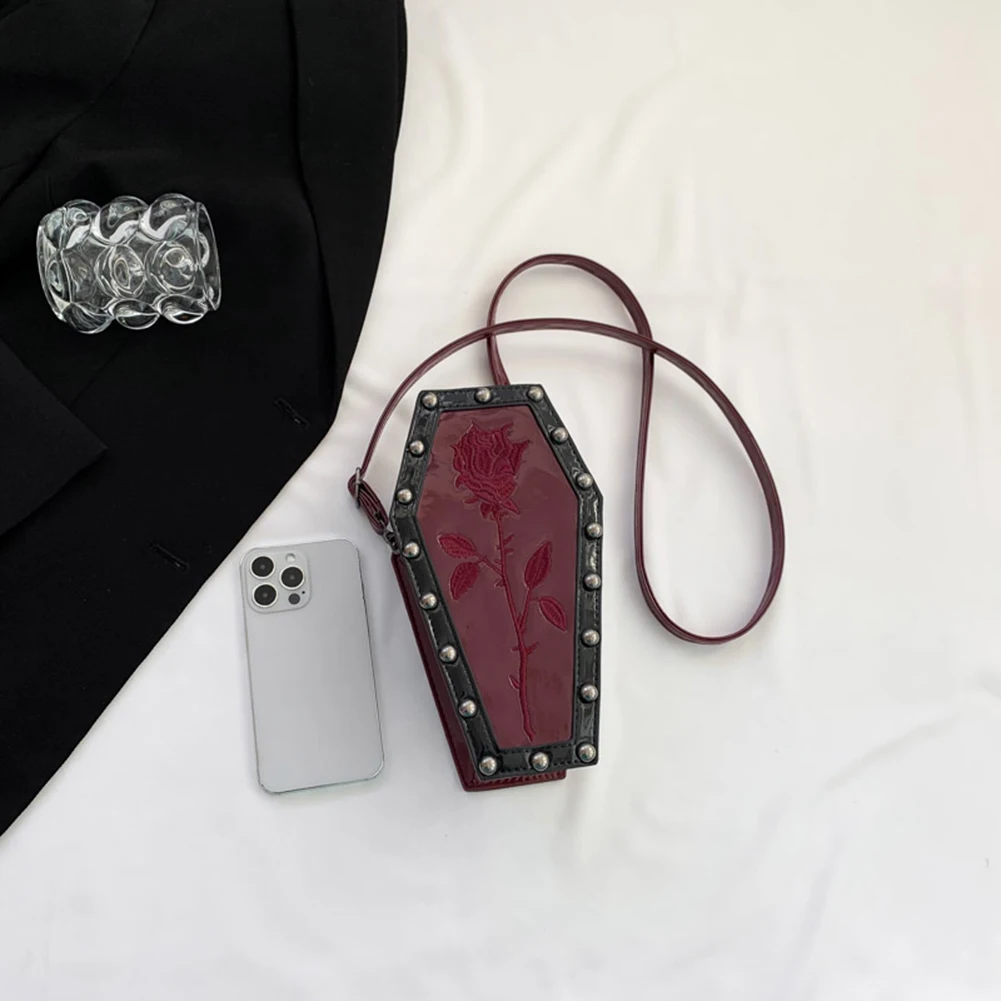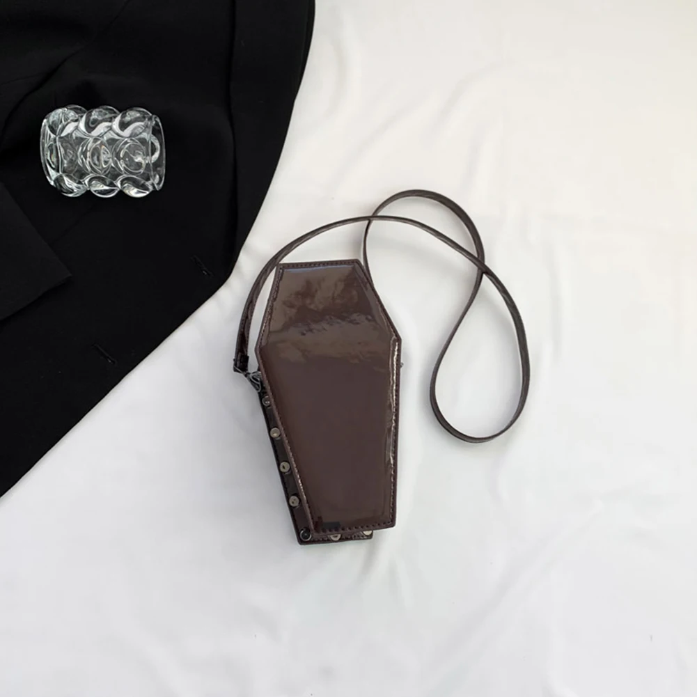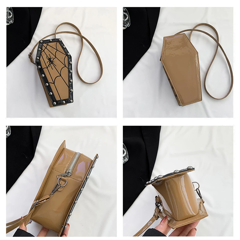 Women Coffin Satchel Purse Gothic Strap Adjustable Spider Coffin Bag Y2K Mobile Phone Bag Halloween Sling Purse